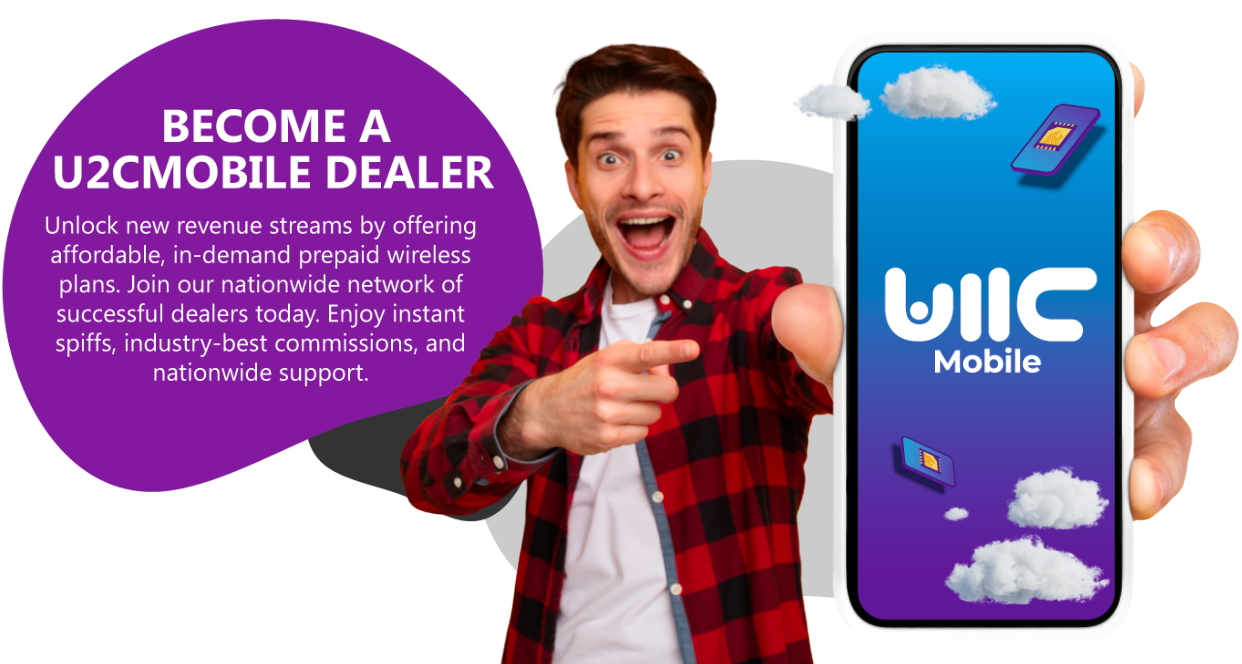 U2CMOBILE is a leading prepaid wireless provider dedicated to affordable, reliable service. Our dealer program empowers local businesses and entrepreneurs to expand their offerings and boost their revenue with flexible, no-contract plans and real support.