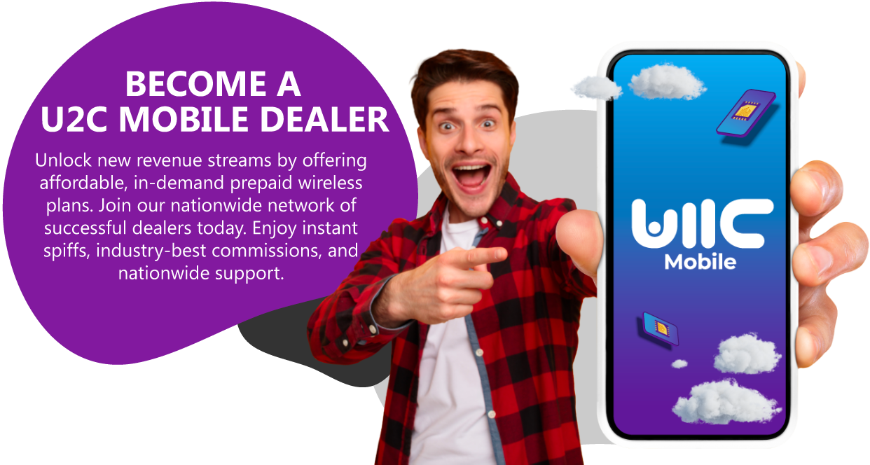 U2C MOBILE is a leading prepaid wireless provider dedicated to affordable, reliable service. Our dealer program empowers local businesses and entrepreneurs to expand their offerings and boost their revenue with flexible, no-contract plans and real support.